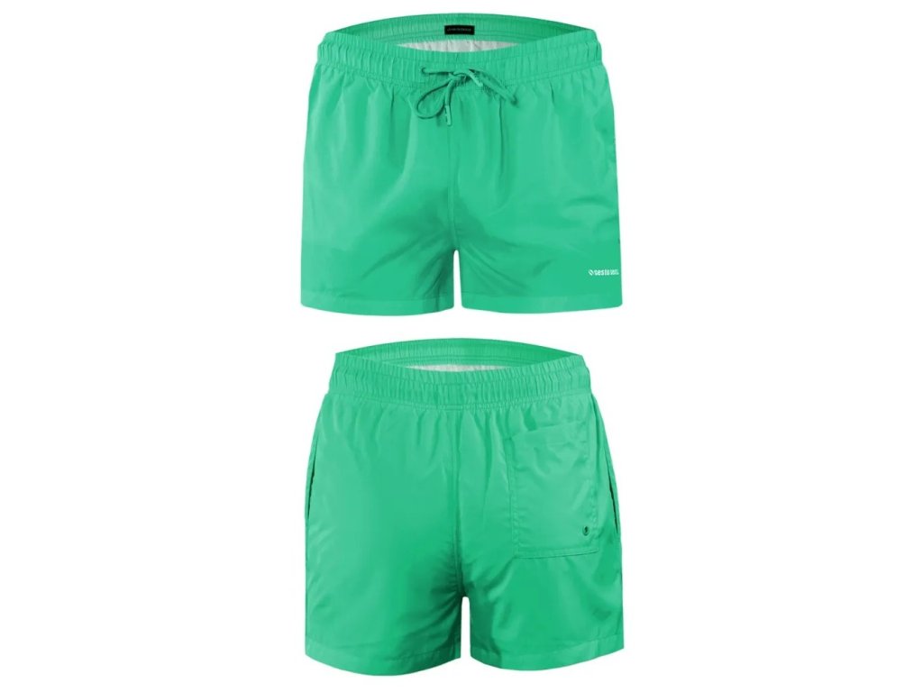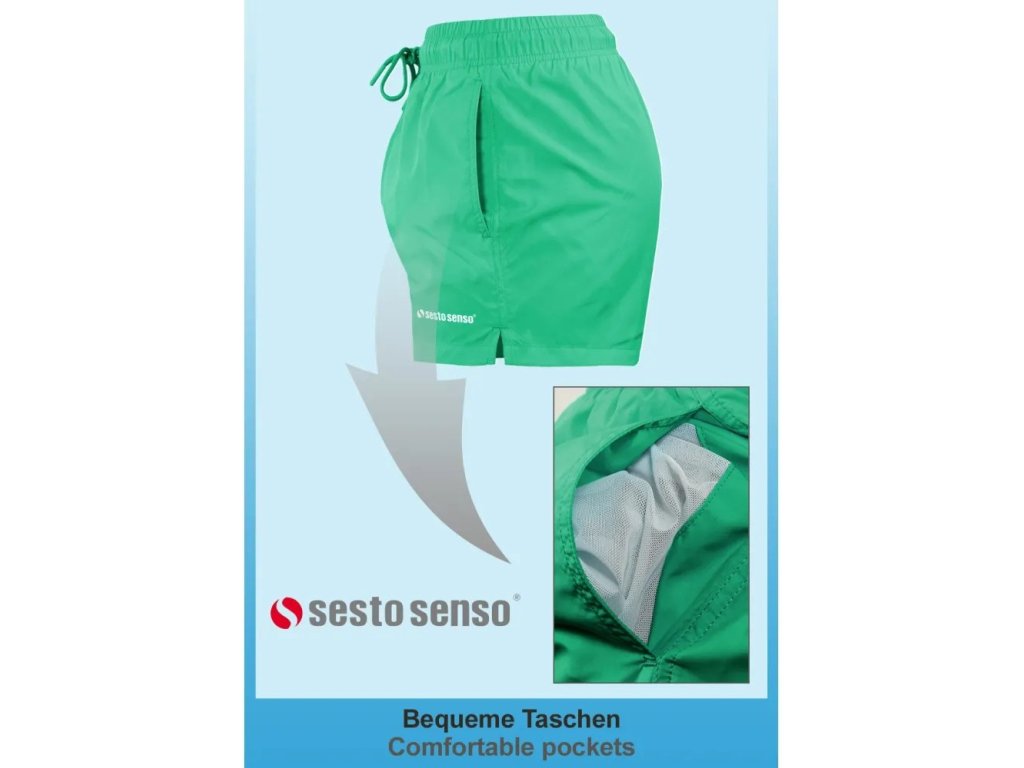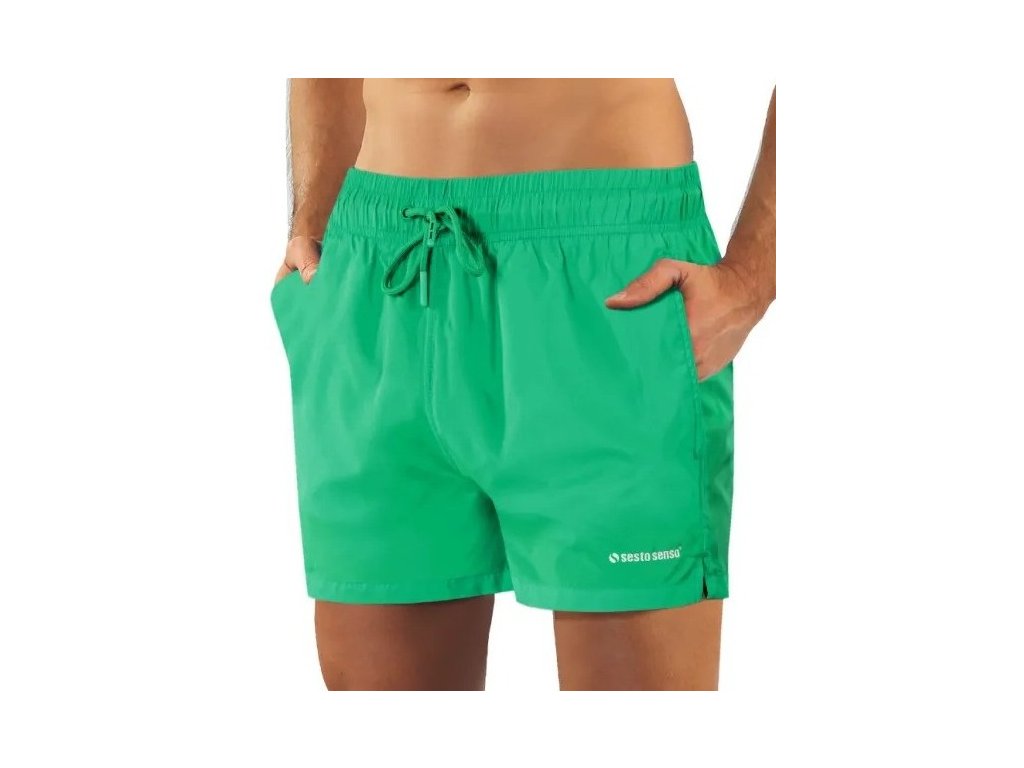 Koupací šortky, mají dvě boční kapsy, uvnitř ze síťoviny a jednu zadní látkovou kapsu se zapínáním na suchý zip. V pase šňůrka pro zavázání, na spodní části nohavice je logo Sesto Senso. Vnitřní slipy jsou vyrobeny z měkké síťoviny.