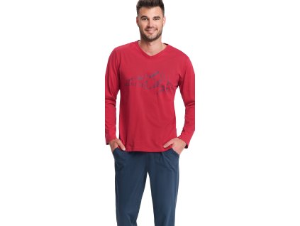 Pánské bavlněné pyžamo s dlouhými nohavicemi i rukávy jednoduchého střihu. Vrchní díl pyžama má průkrčník do véčka a zdobí ho zajímavá aplikace na hrudi. Velice pohodlné kalhoty mají pružnou gumu v pase. Toto pyžamo potvrzuje pravidlo, že v jednoduchosti je krása.
